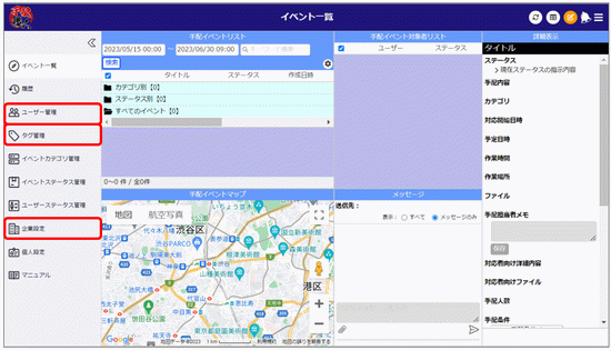 管理情報を操作する権限がないユーザーがログインした場合は、メニューにこれらは表示されません。