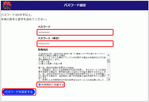 3.利用規約を確認してチェックを付け、[パスワードを設定する]をクリックします。
