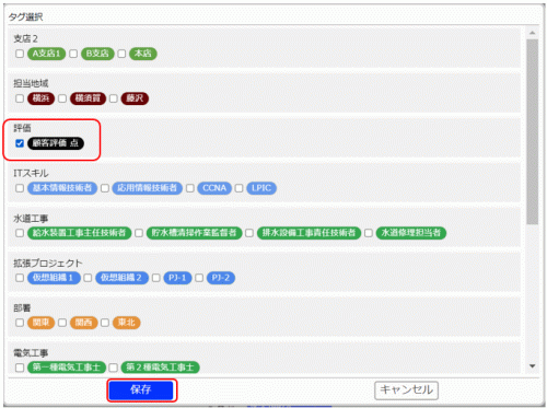 4.追加条件に使用するタグを選んで、[保存]ボタンをクリックします。