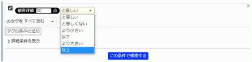2.タグに数値を入れて、その数値との比較をプルダウンリストから選択します。