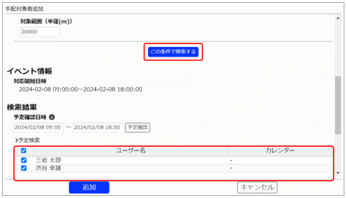 1.イベント登録ウィンドウで[対象者を検索する]ボタンをクリックしてダイアログを表示します。