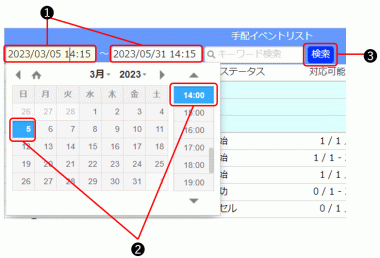 ❸[検索]ボタンをクリックするとリストの表示期間が変更されます。
