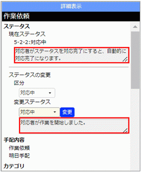 「現在ステータス」と「変更ステータス」の説明が以下のように表示されます。