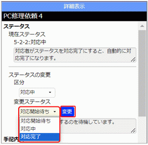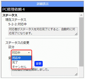 3.変更させるステータスを選び、[変更]ボタンをクリックします。