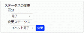 「区分」で[完了]を選択 し、 「変更ステータス」で[イベント完了]を選択します。