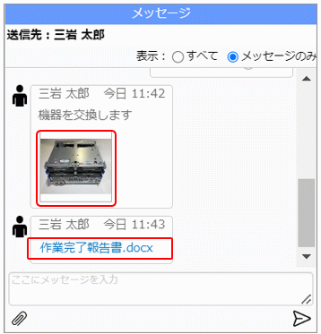 7.ユーザーからファイルが送信されると、メッセージ欄に表示されます。