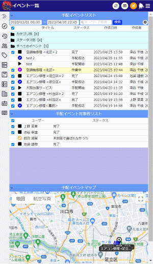 モバイル表示の場合、イベント一覧画面は各エリアが縦に並んで表示されます。