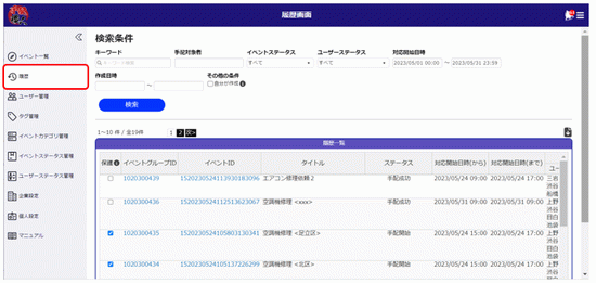 手配権限保持者:自分が手配したイベントと閲覧権限を持っているイベントが表示されます。