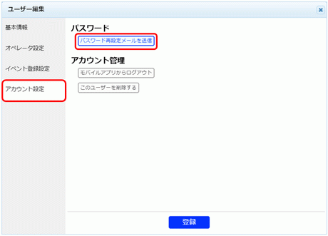 2.[アカウント設定]の[パスワード再設定メールを送信]ボタンをクリックします。