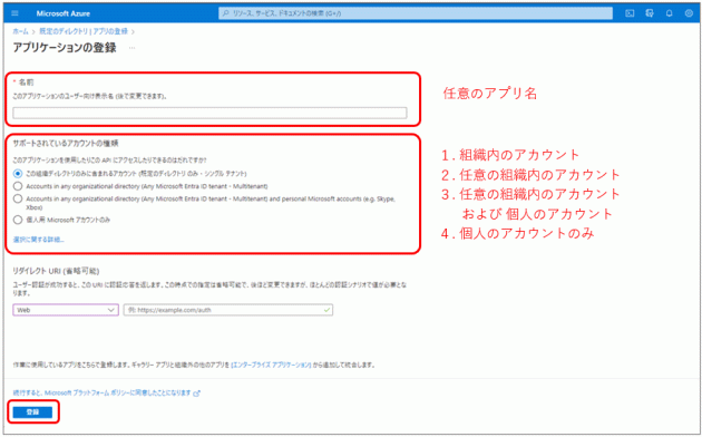 ① Office365用の認証ファイルを作成する。(Microsoft Entra ID (*)の管理者が行う)