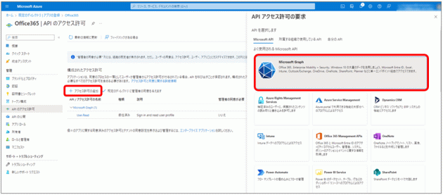 7.「+アクセス許可の追加」をクリックし、「MicrosoftGraph」を選択します。