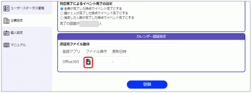 6.「カレンダー認証設定」の表示を確認して、[登録]をクリックします。