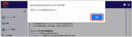 5.認証ファイルが登録されたというメッセージが表示されたら[OK]をクリックします。