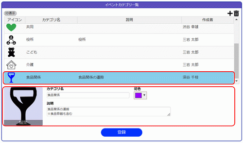 編集できるのは自分が登録したイベントカテゴリだけです。