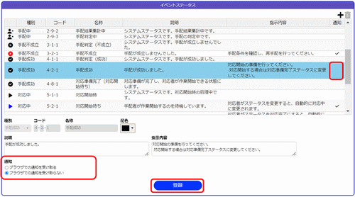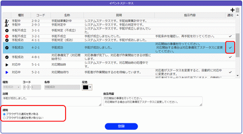 2.[登録]ボタンをクリックすると、通知の有無が設定されます。