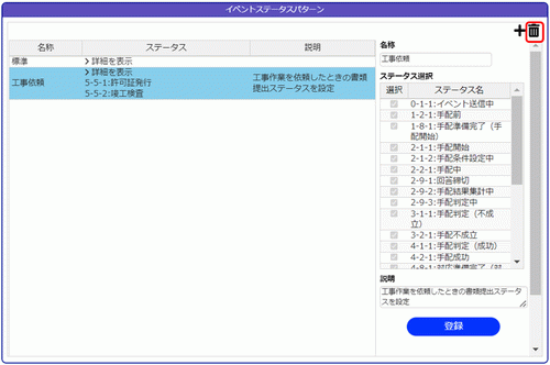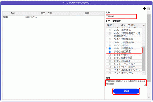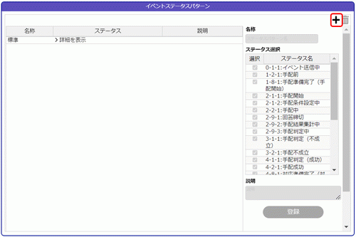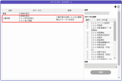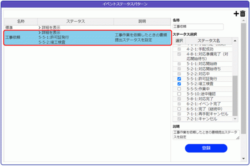 4.[登録]ボタンをクリックすると、左のステータスパターン一覧に追加されます。