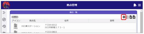 1.拠点管理画面の[拠点一覧]の右上にある