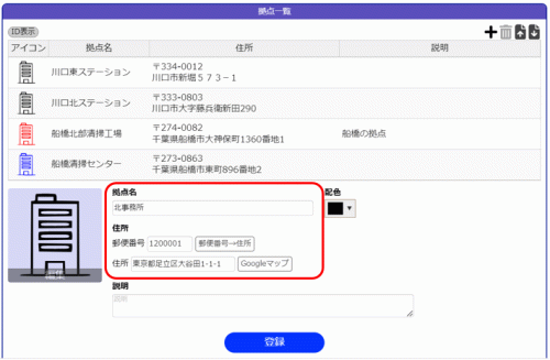 6.必要な拠点について上記操作を繰り返して登録します。