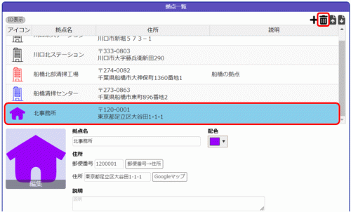 ホーム 14 拠点を管理する 14.3 拠点を削除する 14.3拠点を削除する 拠点を削除する場合は以下のように操作します。 ※システム管理者以外は、他の人が作成した拠点を削除することはできません。 1.削除する拠点を選択し、 をクリックします。 ↑