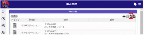 アップロードが実行され、CSVファイルの内容が拠点一覧に反映されます。