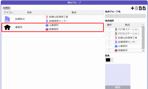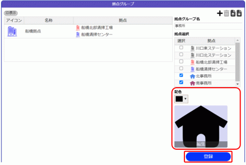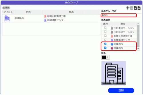 4.[登録]ボタンをクリックすると、左の一覧に拠点グループが追加されます。