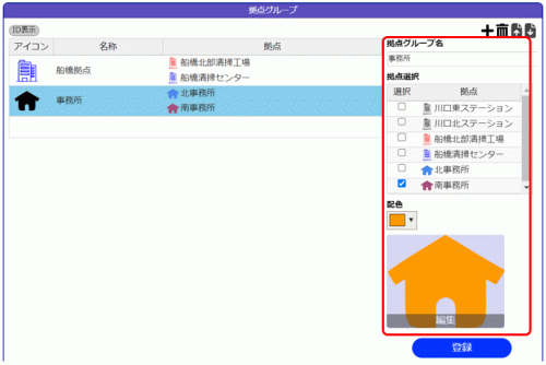 3.[登録]ボタンをクリックすると、拠点グループが更新されます。
