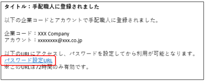 パスワードを設定するためのURLは72時間のみ有効です。メール受信後、期限内にパスワードを設定してください。