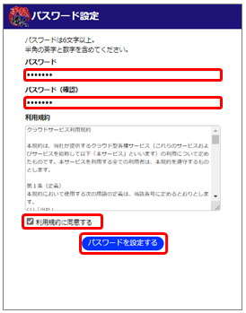 3.利用規約を確認してチェックを付け、[パスワードを設定する]をタップします。
