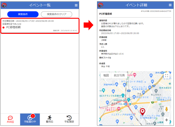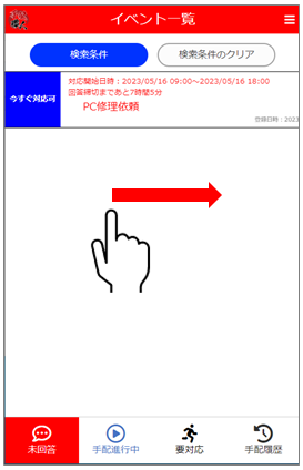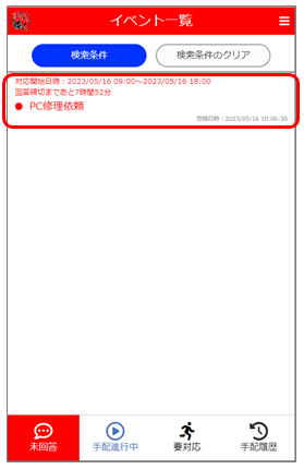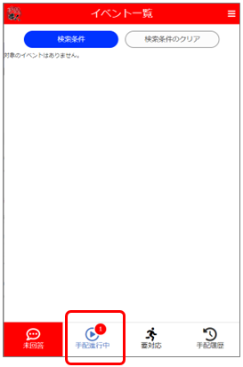 5.[手配進行中]をタップすると、自分が回答した手配イベントが表示されます。