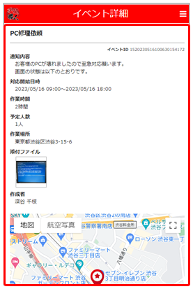 2.詳細画面で依頼内容、作業場所などを確認します。