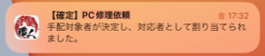 ステータスが[対応中]になったことが手配担当者に通知されます。