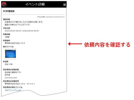 2.[要対応]の詳細画面で依頼内容を確認します。
