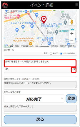 手配担当者から返信があると[メッセージ]欄に表示されますので、指示に従ってください。。